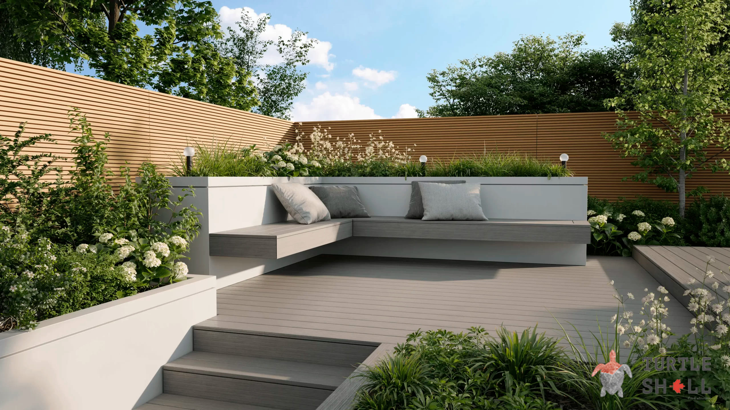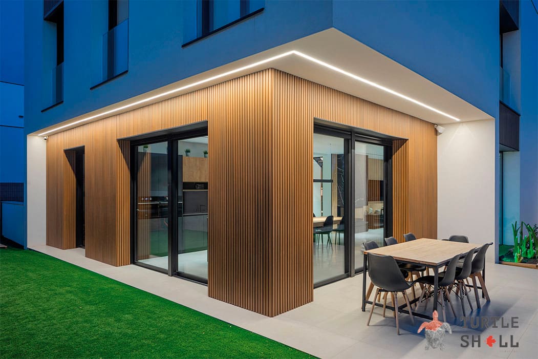 Панели Turtle Shell отличаются от обычных деревянных реек своей высокой долговечностью и устойчивостью к грибку и плесени. Они не требуют постоянной обработки лаками и антисептиками, благодаря чему обеспечивают удобство и экономию времени при уходе за ними.