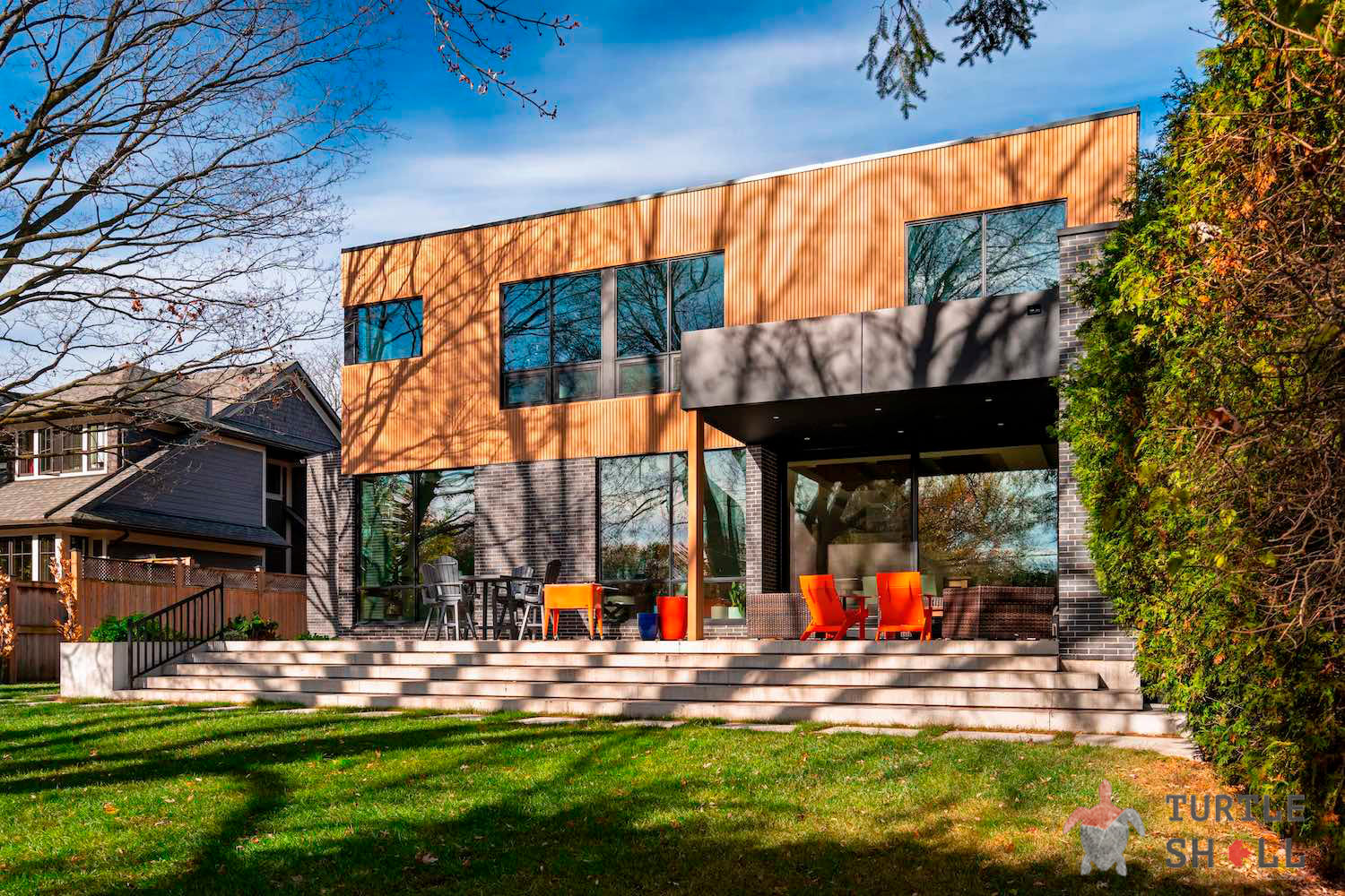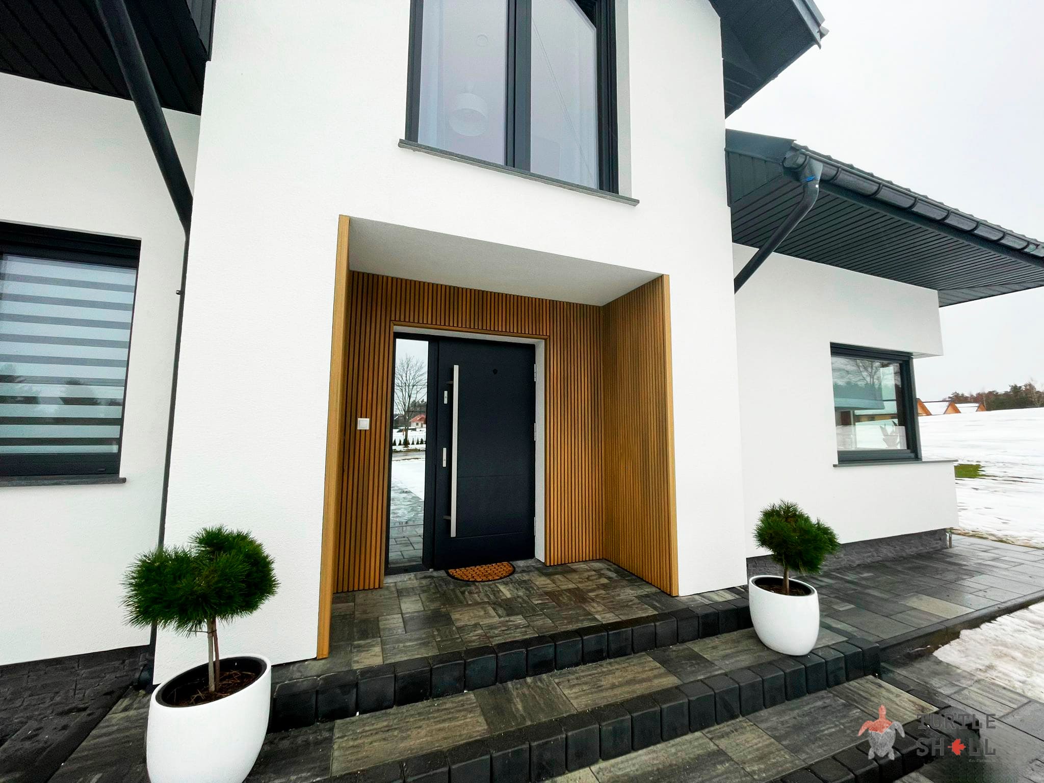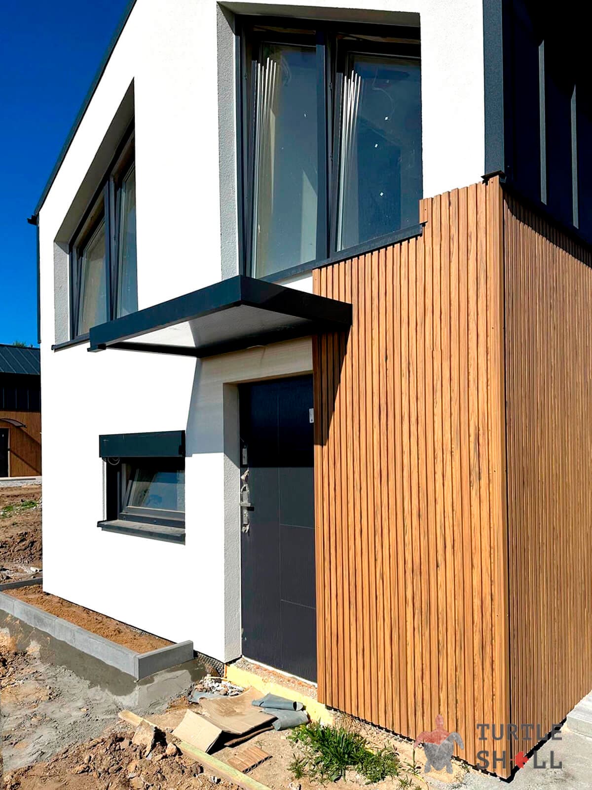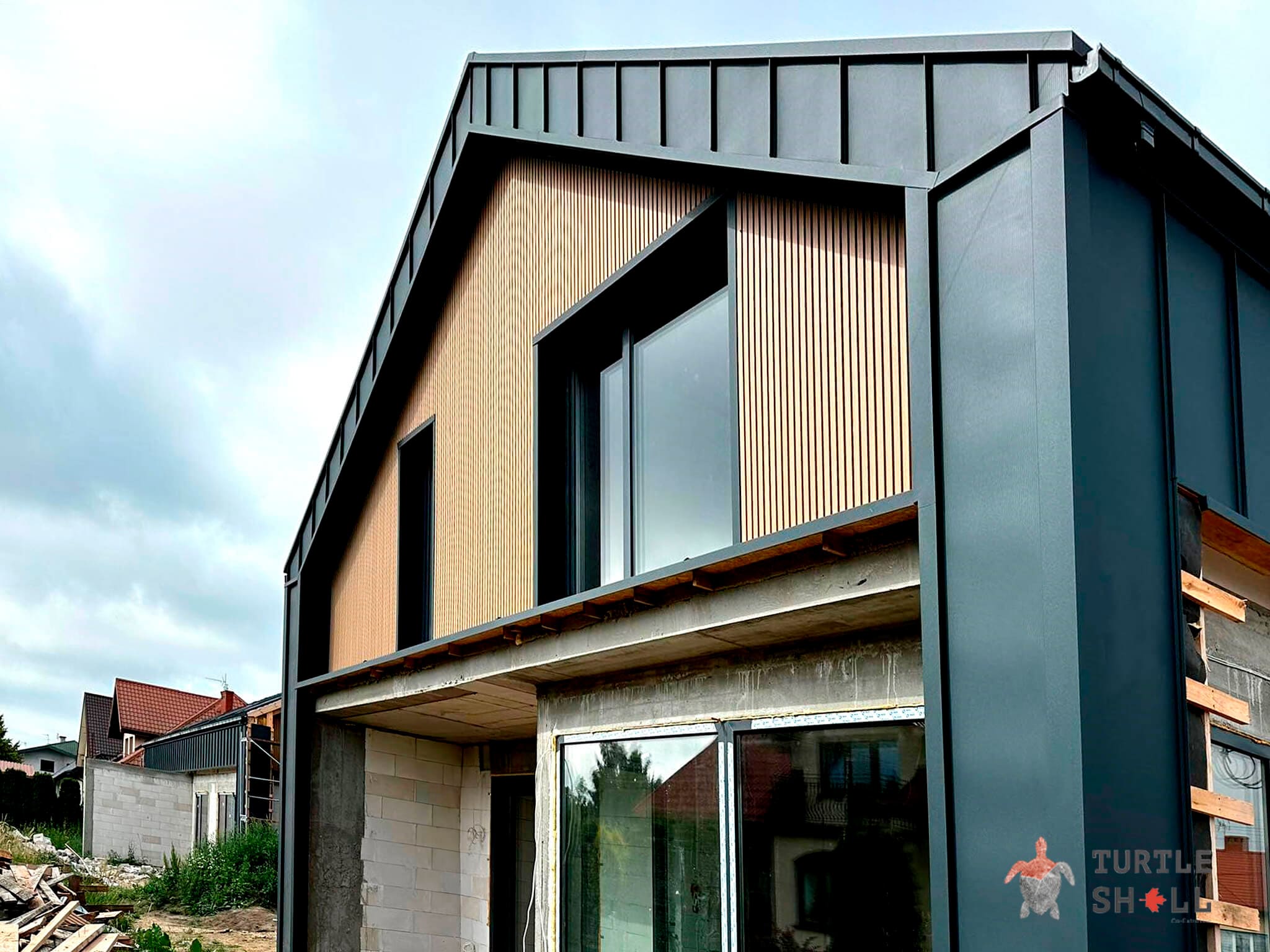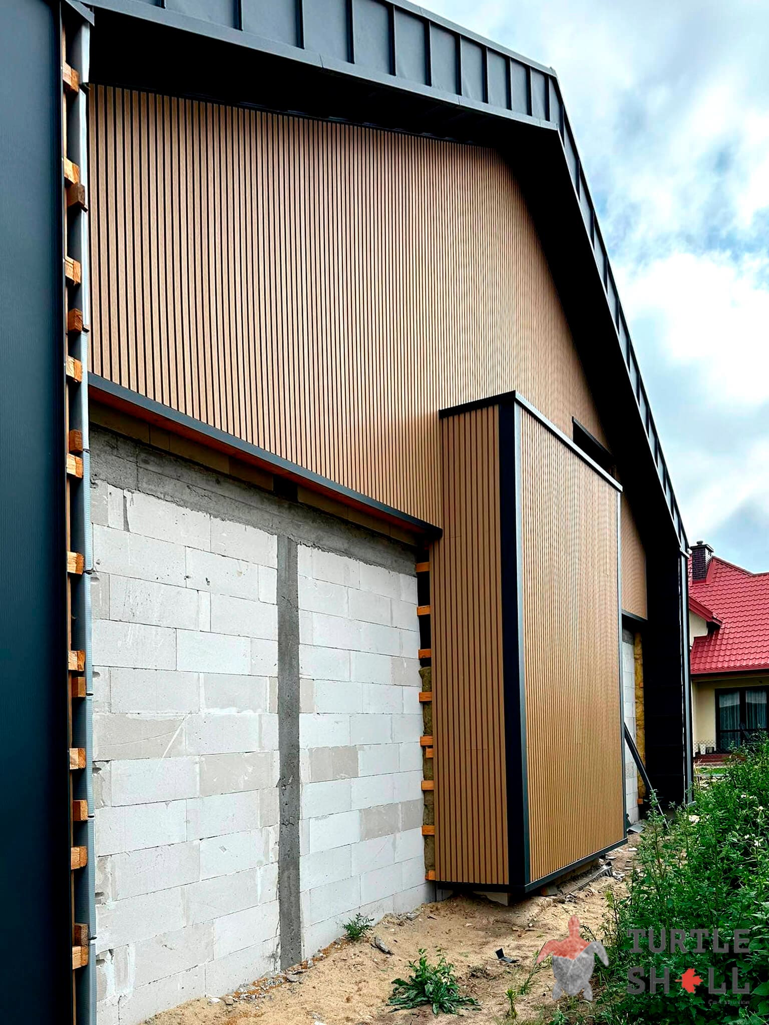 Одним из главных преимуществ реечных панелей Turtle Shell является отсутствие сквозных зазоров, что обеспечивает полную защиту фасада от воздействия внешней среды. Они легко монтируются как снаружи, так и внутри помещений, что делает их универсальным решением для различных типов строительства.