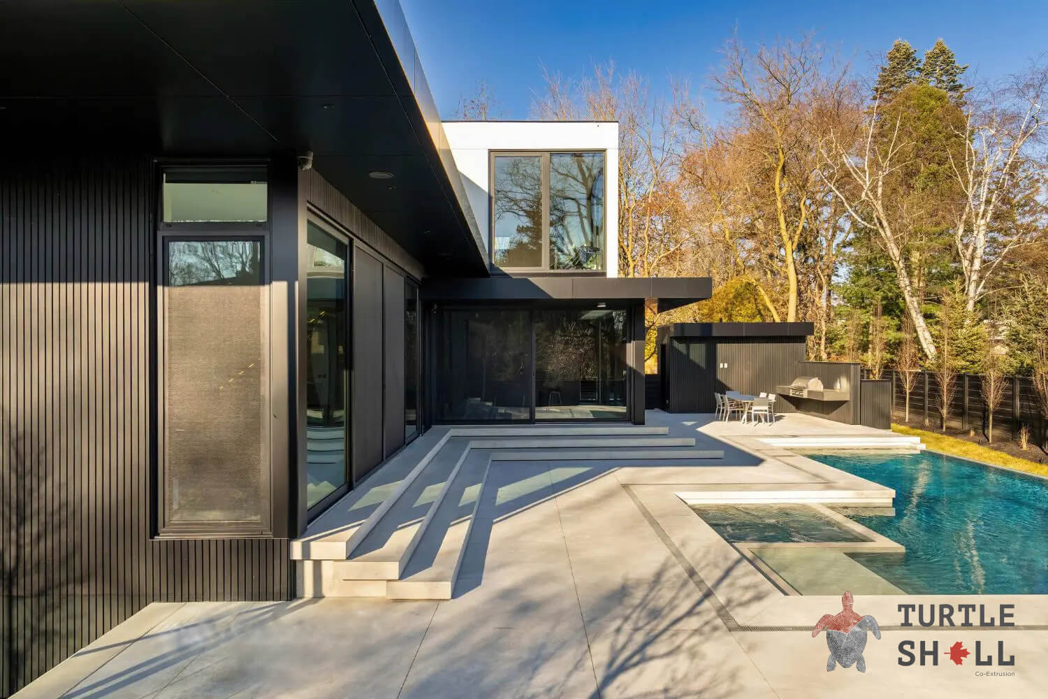 * Изысканный дизайн: Уникальная структура и текстура реечных панелей Turtle Shell создают неповторимый визуальный эффект. Отделка в сером цвете Faroese Smokewood добавляет элегантности и современности вашему фасаду.